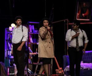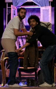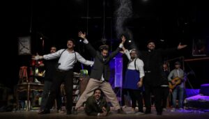 العرض بطولة: باسم داوود، حسام سيد، عبد الرحمن الزيدي، سهيلة الانور، يوسف مراد، امير الصم، تأليف داريو فو، من إعداد وإخراج باسم داوود.