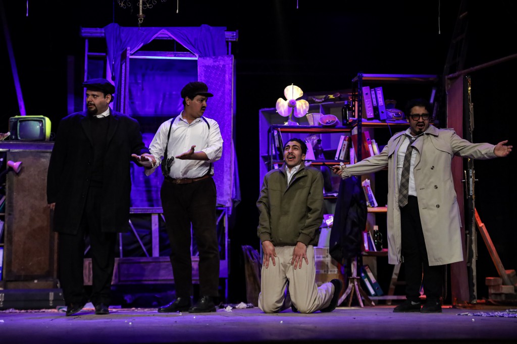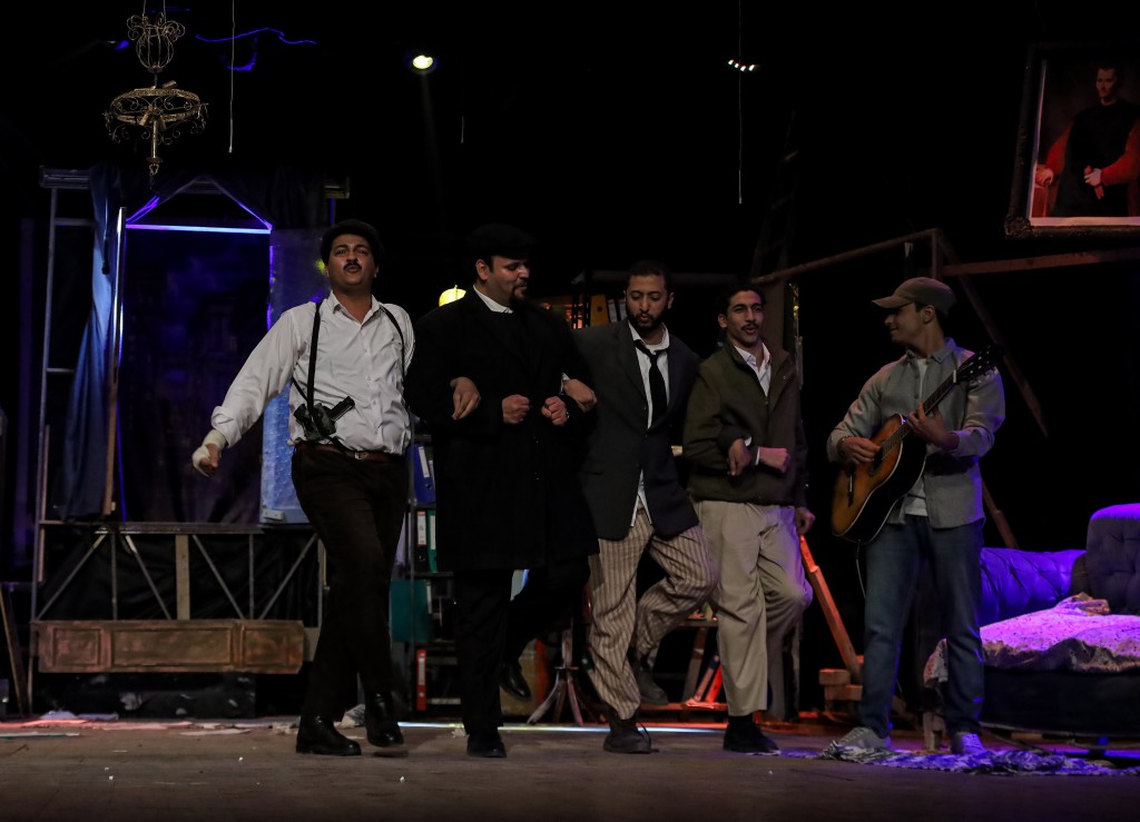العرض بطولة: باسم داوود، حسام سيد، عبد الرحمن الزيدي، سهيلة الانور، يوسف مراد، امير الصم، تأليف داريو فو، من إعداد وإخراج باسم داوود.