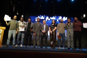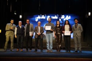 ثم جاءت لحظة توزيع جوائز المسابقات المختلفة بالمهرجان بداية من مسابقة البحث العلمي: حيث تم تكريم لجنة التحكيم الخاصة بها ومنهم الدكتور ياسر علام والدكتور حاتم حافظ والذي أعلن عن جائزة المركز الثاني إلى نيرفانا الخطيب والمركز الأول إلى محمد ياسين.