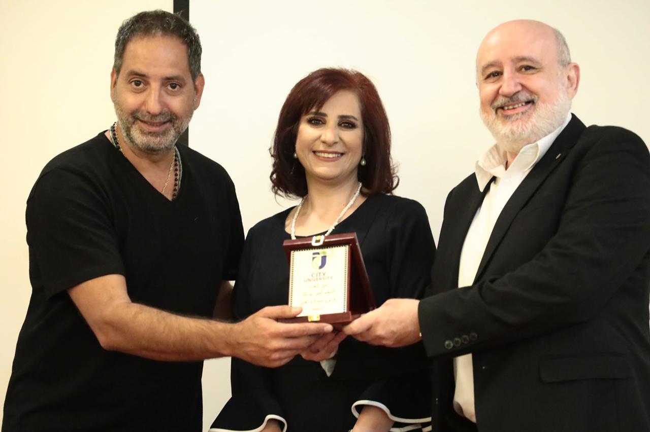هذا وقلد رئيس الجامعة وعميدة كلية السياحة الفنان الشاب “أمير يزبك” درعاً تقديرياً لحضوره ومساهمته في تنشيط السياحة كفنان حمل لبنان بجناحيه وجال العالم بصوته مظهراً لبنان في أبهى صورة ..