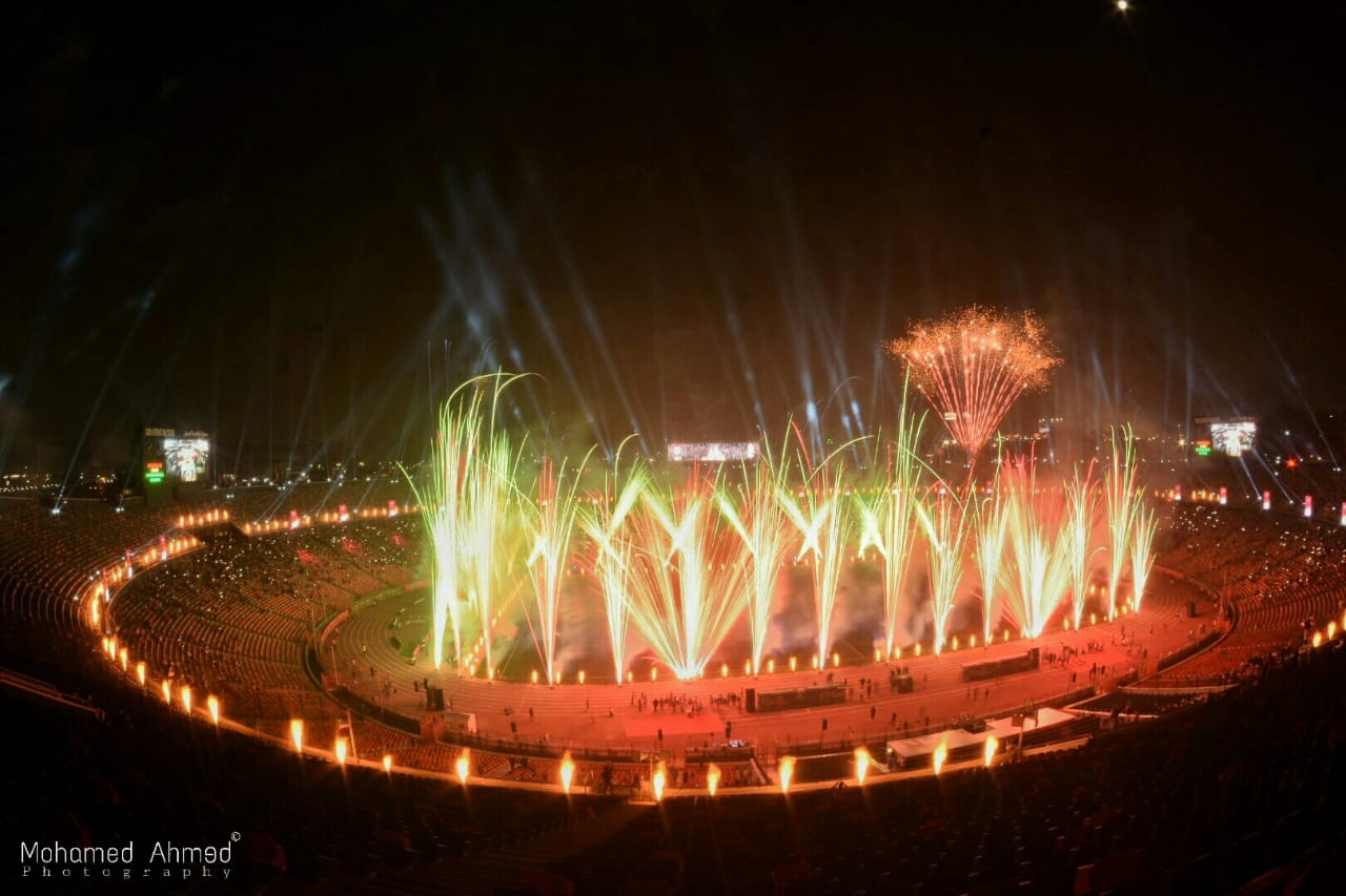 لقى العرض العالمي الذي قدمه بالألعاب النارية احمد عصام والذي أضاء سماء القاهرة احتفاءا بافتتاح كأس الأمم الإفريقية إشادة كبيرة.
