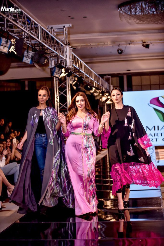 أقامت الفنانة التشكيلية والمصممة لمياء منهل معرضها الخاص ضمن فعاليات مهرجان الشرق الاوسط للأزياء في مصر وسط تكريم خاص بها
