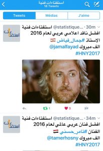 قام موقع “إستفتاءات فنية” باستفتاء جماهيري لمن هم الأفضل في عالم الفن والصحافة الفنية. ورشّح الأسماء النهائية بمعدل أقوى ثلاثة
