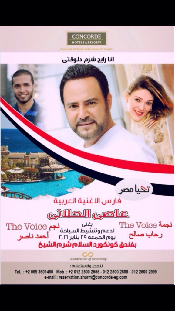 دعماً للسياحة في مصر، يحيي فارس الغناء العربي الفنان اللبناني عاصي الحلاني حفلاً ضخماً في فندق “كونكورد السلام – شرم