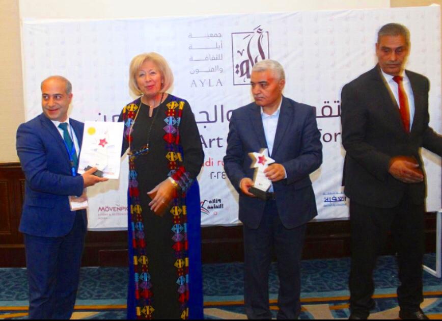تم تكريم رئيس رئيس جمعية كهف الفنون الفنان غاندي بو ذياب من قبل معالي وزيرة الثقافة الاردنية السيدة هيفاء النجار