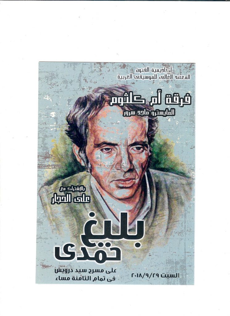 تحت رعاية اكاديمية الفنون برئاسة الاستاذ الدكتور اشرف زكى وبالتعاون مع المعهد العالي للموسيقى العربية تقيم فرقة ام كلثوم حفلا